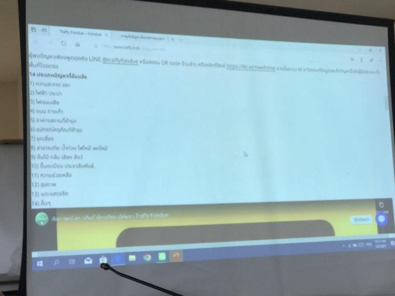 โครงการอบรมการใช้ Traffy Fondue เพื่อเพิ่มช่องทางในการรับแจ้งและจัดการปัญหาในพื้นที่เทศบาลตำบลศรีถ้อย ณ ห้องประชุมสภาเทศบาลตำบลศรีถ้อย