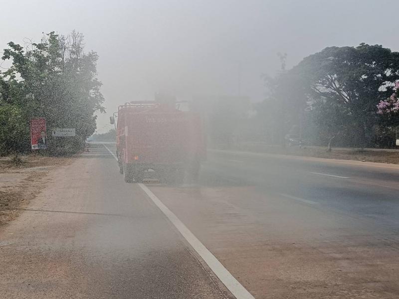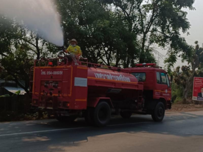 ดำเนินการฉีดพ่นน้ำ เพื่อลดฝุ่นละออง ในพื้นที่ตำบลศรีถ้อย ผ่าน ถนนพหลโยธิน บ้านต้นผึ้ง หมู่ที่ 11 บ้านต้นแก หมู่ที่ 1 ตำบลศรีถ้อย อำเภอแม่ใจ (14 ภาพ)