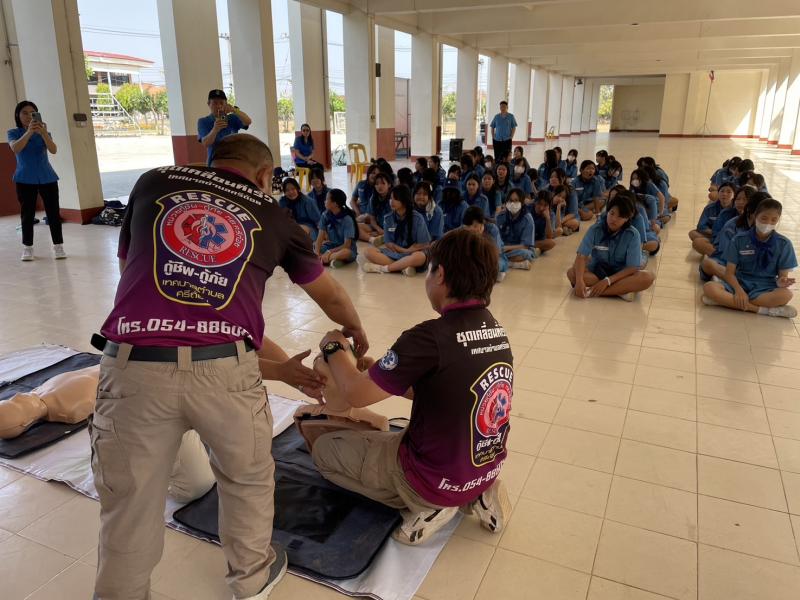 บรรยายให้ความรู้ ให้กับยุวกาชาดระดับมัธยมศึกษาในหัวข้อ การทำ CPR หรือ Cardiopulmonary resuscitation การช่วยเหลือผู้ป่วยที่กำลังจะหยุดหายใจ หรือหัวใจกำลังจะหยุดเต้น ให้กลับมาหายใจ หรือลมหายใจไหลเวียนได้ตามปกติและการปฐมพยาบาลเบื้องต้น ณ โรงเรียนแม่ใจวิทยาคม อำเภอแม่ใจ จังหวัดพะเยา
