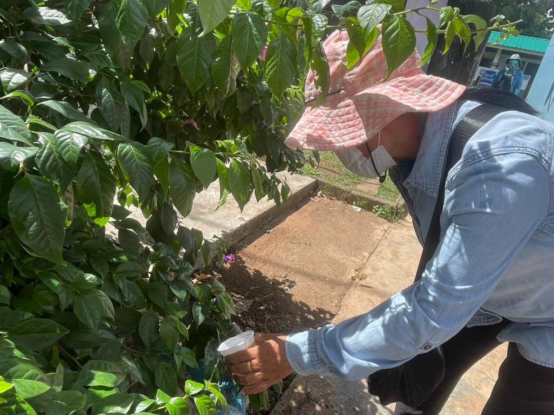 เจ้าหน้าที่งานป้องกันและบรรเทาสาธารณภัย ตรวจทำลายแหล่งเพาะพันธ์ลูกน้ำยุงลาย และพ่นหมอกควันป้องกันควบคุมโรคไข้เลือดออก โรงเรียนเจริญใจ โรงเรียนอนุบาลแม่ใจศรีถ้อย เพื่อป้องกันและควบคุมโรคไข้เลือดออก