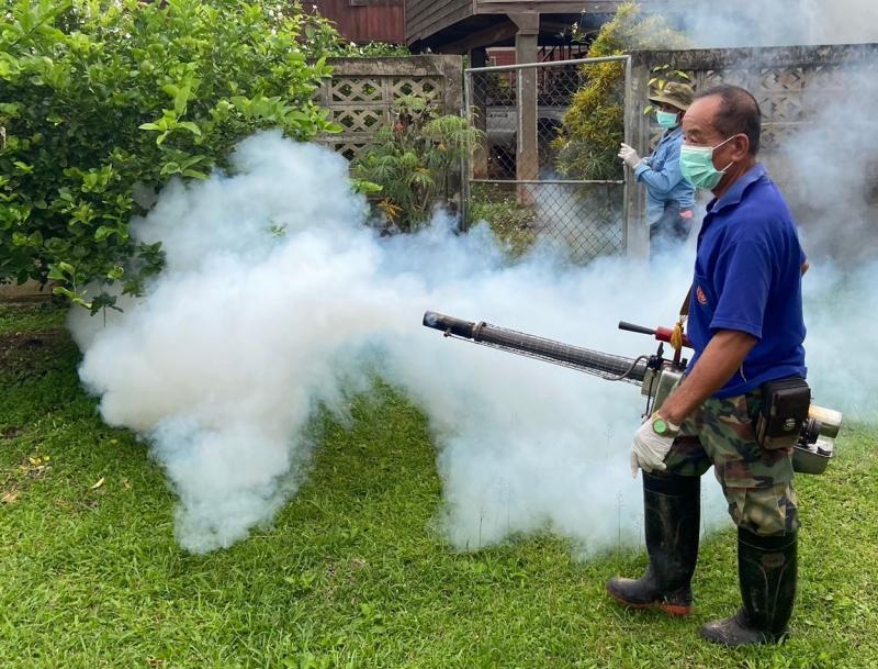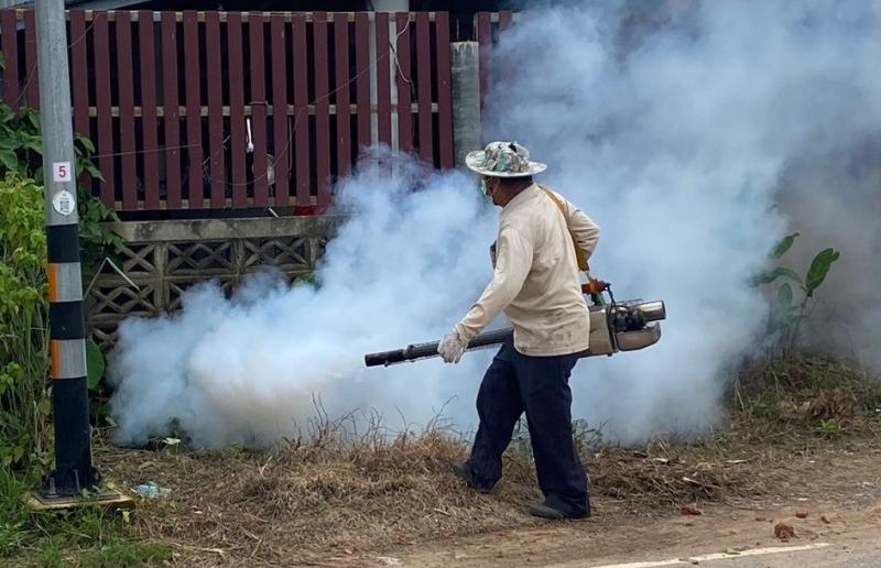 ตรวจทำลายแหล่งเพาะพันธ์ุลูกน้ำยุงลาย และพ่นหมอกควันเพื่อป้องกันควบคุมโรคไข้เลือดออก (Day1) รัศมี 100 เมตร บริเวณร้านค้า ตลาดสด บ้านทุ่งป่าข่า หมู่ที่ 6 และบ้านผู้ป่วย บ้านท่าต้นหาด หมู่ที่ 8 ตำบลศรีถ้อย อำเภอแม่ใจ จังหวัดพะเยา
