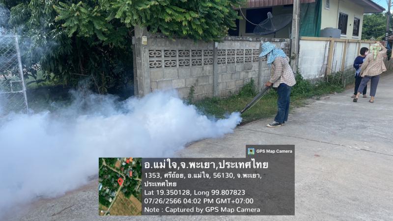 description วันพุธที่ 26 กรกฎาคม 2566 ดาบตำรวจเทพสงวน ปันสุวรรณ นายกเทศมนตรีตำบลศรีถ้อย มอบหมายให้ นายภานุวัฒน์ อะคะโล เลขานุการายกฯ นางถิรดา ไชยเลิศ ที่ปรึกษานายกฯ และนางสาวดวงเดือน อุทธโยธา สมาชิกสภาเขต 2 พร้อมเจ้าหน้าที่กองสาธารณสุขและสิ่งแวดล้อมเทศบาลตำบลศรีถ้อย พ่นหมอกควันเพื่อป้องกันควบคุมโรคระบาดไข้เลือดออก บ้านต้นผึ้ง หมู่ 11 และบ้านต้นแก หมู่ที่ 1 โดยมีผูร่วมกิจกรรมทั้งสิ้น จำนวน 10 คน person admin