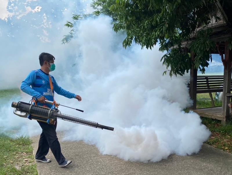 ตรวจทำลายแหล่งเพาะพันธ์ลูกน้ำยุงลาย และพ่นหมอกควันเพื่อป้องกันควบคุมโรคไข้เลือดออก โรงเรียนบ้านป่าสักสามัคคี ตำบลศรีถ้อย อำเภอแม่ใจ จังหวัดพะเยา
