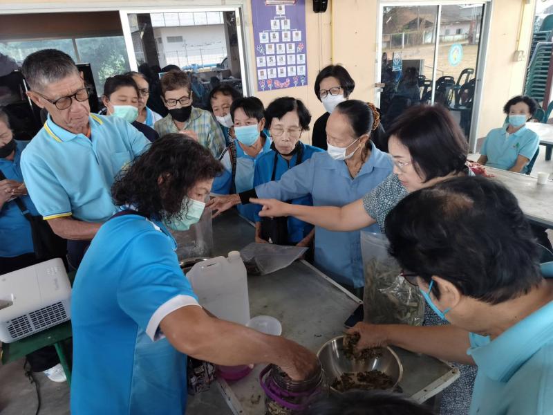 กิจกรรม “ทำยาสมุนไพรลดการปวดเมื่อย” ให้แก่ผู้สูงอายุ ณ ศูนย์พัฒนาศักยภาพและส่งเสริมอาชีพผู้สูงอายุเทศบาลตำบลศรีถ้อย