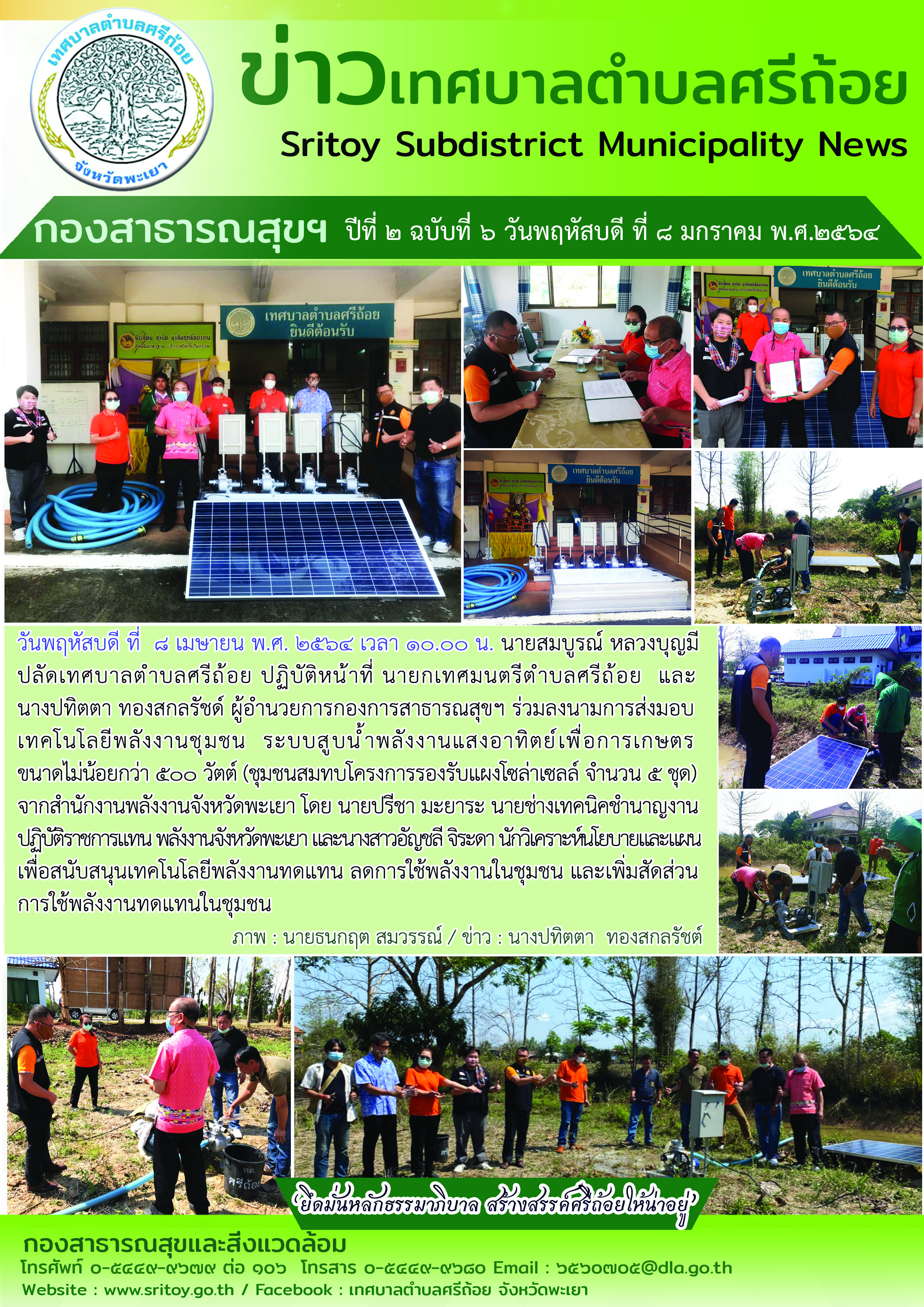 ข่าวประชาสัมพันธ์ เทศบาลตำบลศรีถ้อย กองสาธารณสุขฯ ปีที่ 2 ฉบับที่ 6 วันพฤหัสบดี ที่ 8 มกราคม พ.ศ.2564