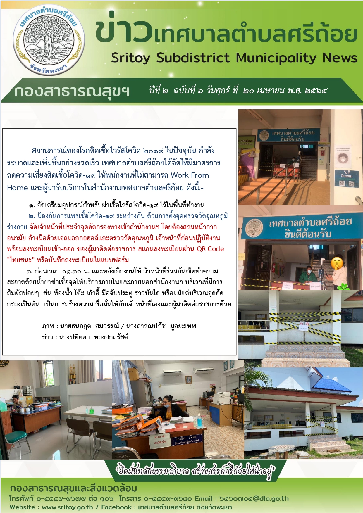 ข่าวประชาสัมพันธ์ เทศบาลตำบลศรีถ้อย กองสาธารณสุขฯ ปีที่ 2 ฉบับที่ 6 วันศุกร์ที่ 20 เมษายน พ.ศ.2564