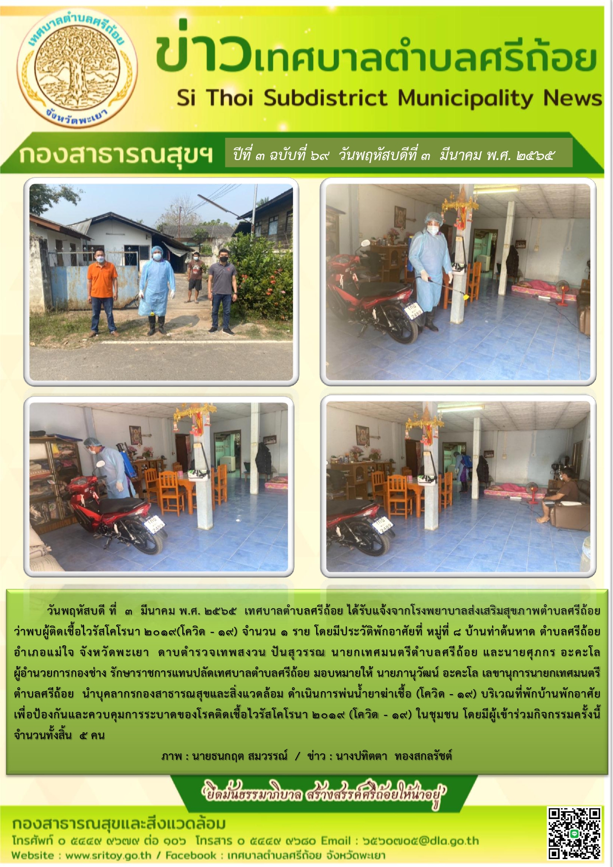 ดำเนินการพ่นน้ำยาฆ่าเชื้อ covid-19 บริเวณที่พักบ้านพักอาศัย เพื่อป้องกันและควบคุมการระบาดของโรคติดเชื้อไวรัสโคโรน่า 2019 ในชุมชน