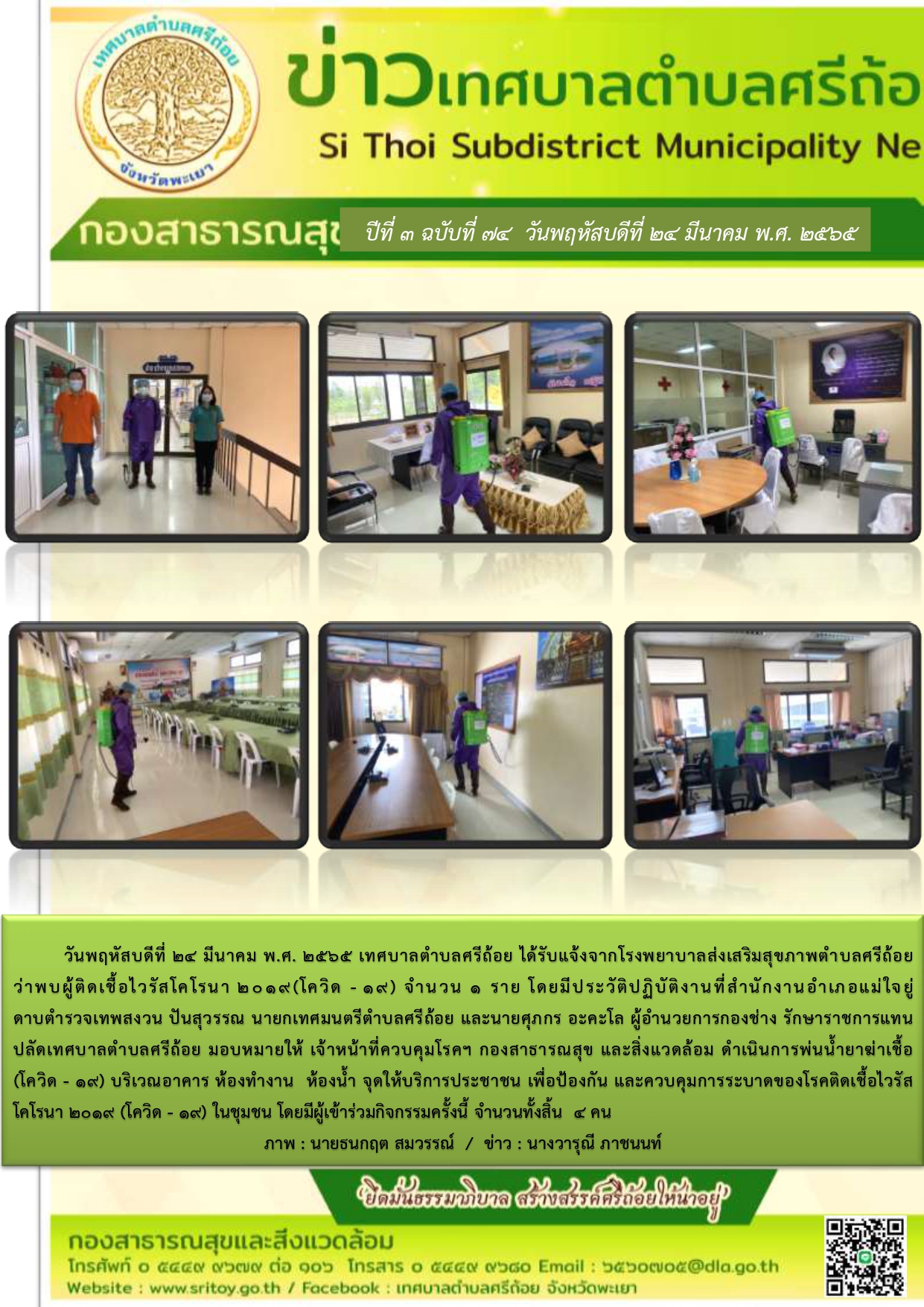 ดำเนินการพ่นน้ำยาฆ่าเชื้อ (โควิด -19) บริเวณอาคาร ห้องทำงาน ห้องน้ำ จุดให้บริการประชาชน เพื่อป้องกัน และควบคุมการระบาดของโรคติดเชื้อไวรัสโคโรนา 2019 ในชุมชน