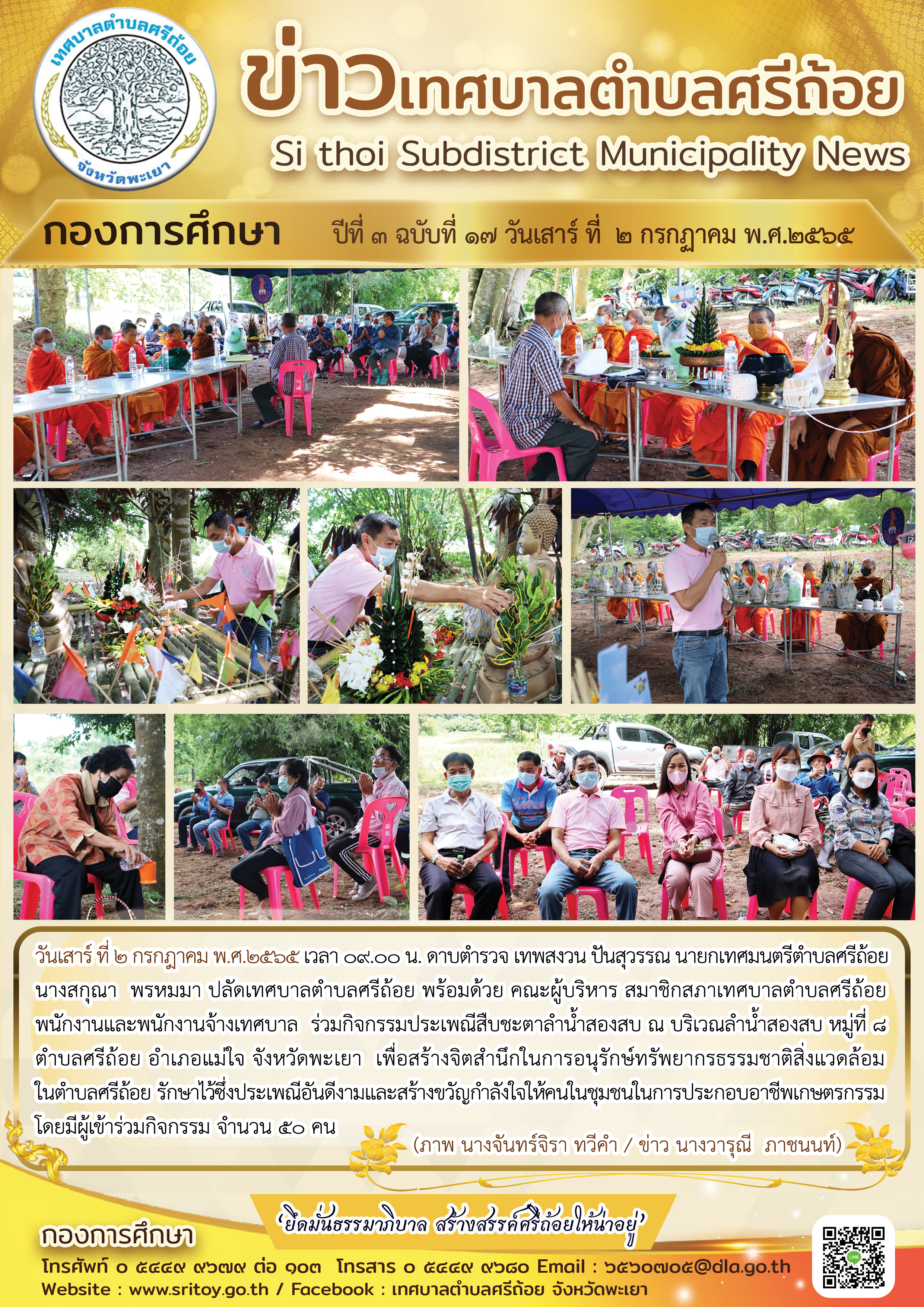 ประชาสัมพันธ์ กองการศึกษา ฉบับที่ 17 ร่วมกิจกรรมประเพณีสืบชะตาลำน้ำสองสบ ณ บริเวณลำน้ำสองสบ หมู่ที่ 8 ตำบลศรีถ้อย อำเภอแม่ใจ จังหวัดพะเยา
