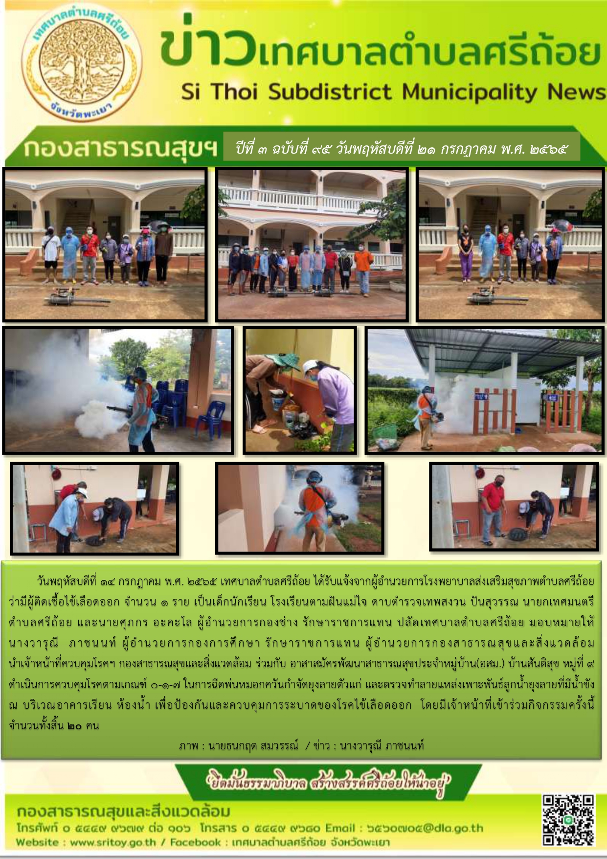 ประชาสัมพันธ์ กองสาธารณสุขฯ ฉบับที่ 95 ดำเนินการควบคุมโรคตามเกณฑ์ 0-1-7 ในการฉีดพ่นหมอกควันกำจัดยุงลายตัวแก่ และตรวจทำลายแหล่งเพาะพันธุ์ลูกน้ำยุงลายที่มีน้ำขัง ณ บริเวณอาคารเรียน ห้องน้ำ เพื่อป้องกันและควบคุมการระบาดของโรคไข้เลือดออก