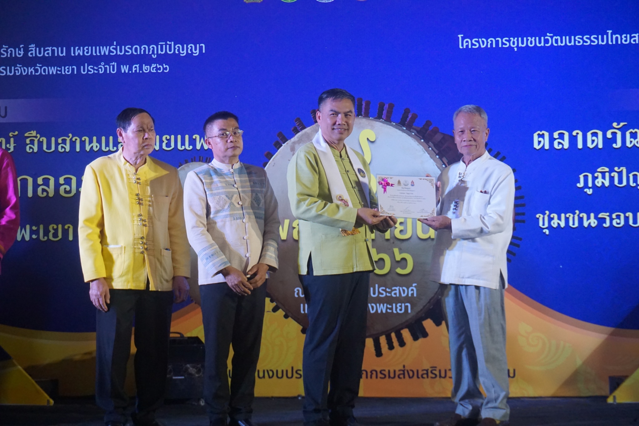 วันที่ 8 พฤศจิกายน 2566 ดาบตำรวจเทพสงวน ปันสุวรรณ นายกเทศมนตรีตำบลศรีถ้อยมอบหมายให้นายอินจันทร์ ต๊ะมาธง รองนายกเทศมนตรี รับมอบเกียรติบัตรเชิดชูเกียรติผู้สนับสนุนงานด้านศาสนา ศิลปะ วัฒนธรรม ประเภทองค์กรณ์,/ชุมชน และนายพรหมา ปัญญาวรรณ ประเภทบุคคล ณ ลานอเนกประสงค์ เทศบาลเมืองพะเยา