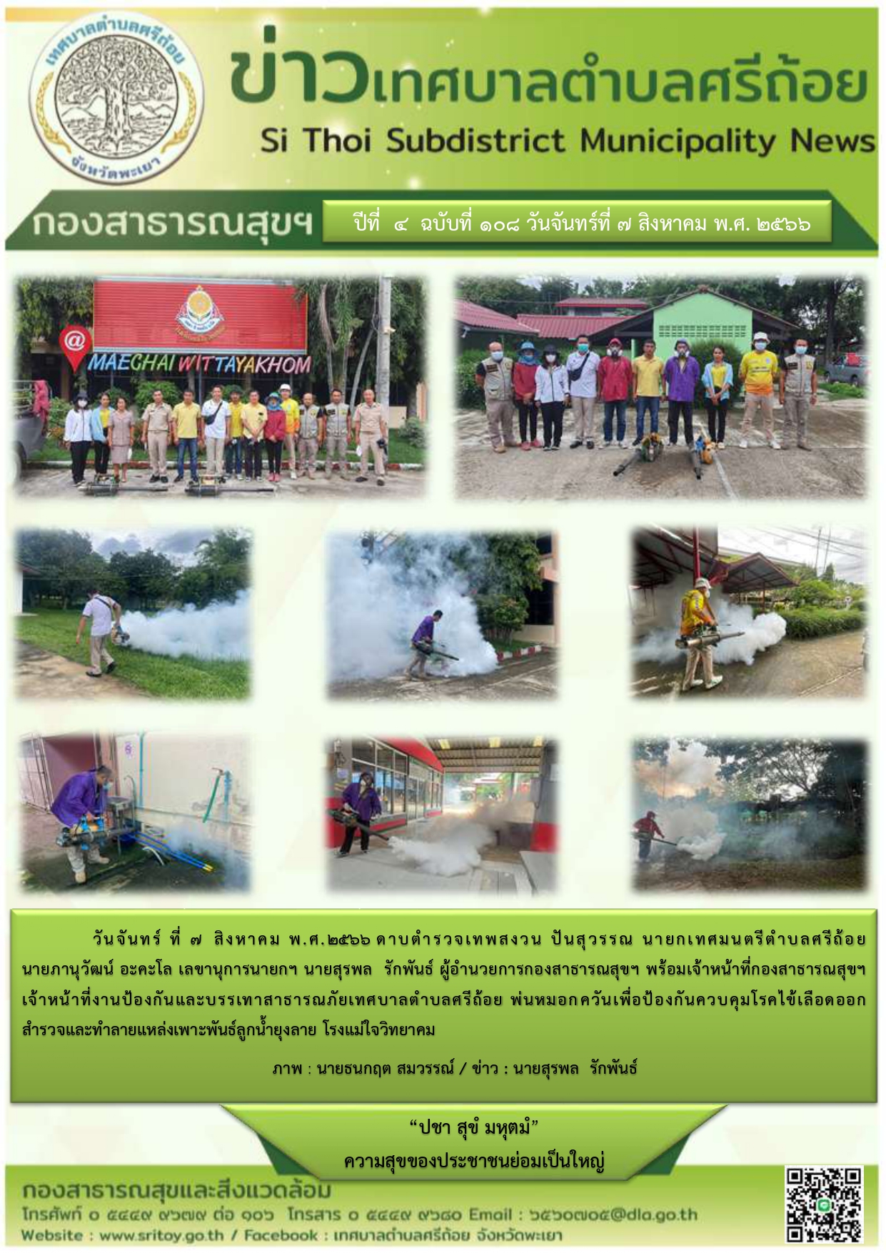 ประชาสัมพันธ์ กองสาธารณสุขฯ ฉบับที่ 108 พ่นหมอกควันเพื่อป้องกันควบคุมโรคไข้เลือดออกสำรวจและทำลายแหล่งเพาะพันธ์ลูกน้ำยุงลาย โรงเรียนแม่ใจวิทยาคม