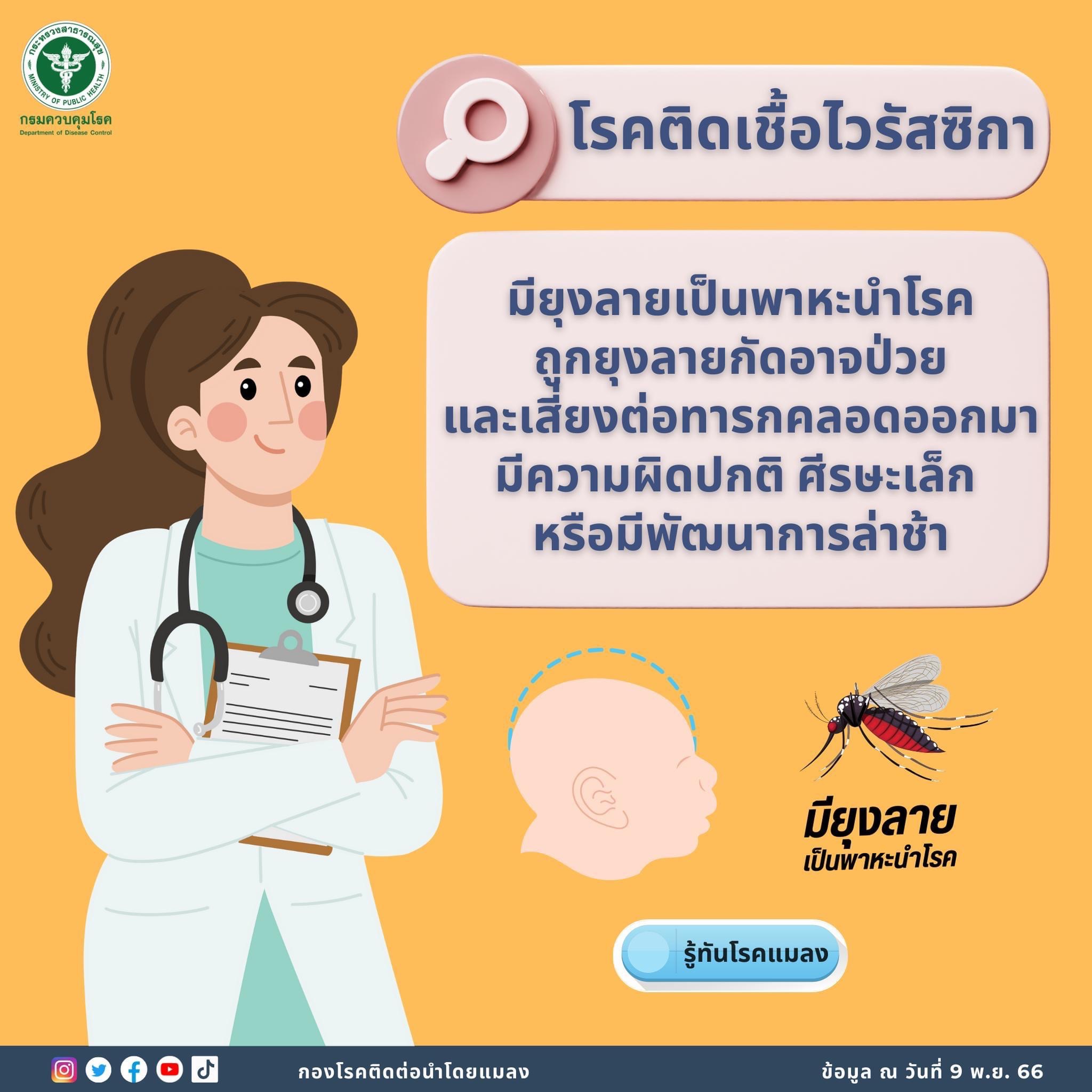 กองสาธารณสุขและสิ่งแวดล้อม ประชาสัมพันธ์สื่อความรู้เกี่ยวกับโรคติดเชื้อไวรัสซิก้าและการป้องกันตนเองจากโรคไข้เลือดออกในกลุ่มหญิงตั้งครรภ์
