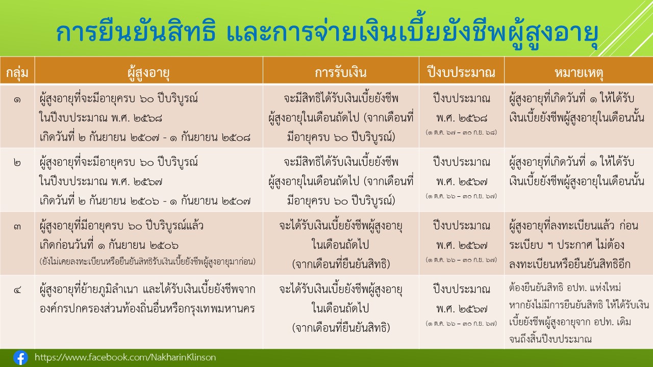 การยืนยันสิทธิ และการจ่ายเงินเบี้ยยังชีพผู้สูงอายุ