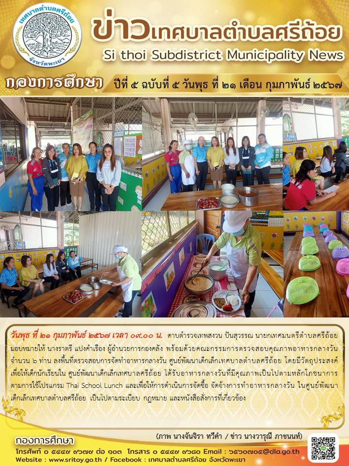 ประชาสัมพันธ์ กองการศึกษา ปีที่ 5 ฉบับที่ 5 ลงพื้นที่ตรวจสอบอาหารกลางวัน ประจำปี พ.ศ.2567