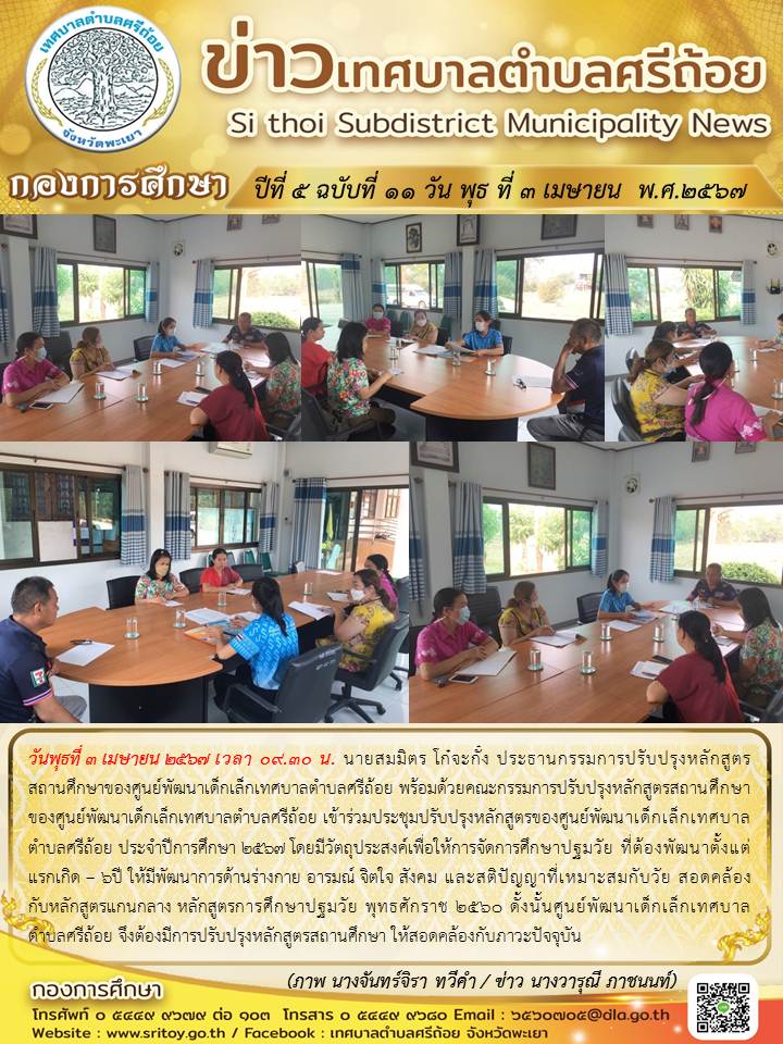 ประชาสัมพันธ์ กองการศึกษา ปีที่ 5 ฉบับที่ 11 เข้าร่วมประชุมปรังปรุงหลักสูตรของศูนย์พัฒนาเด็กเล็กเทศบาลตำบลศรีถ้อย