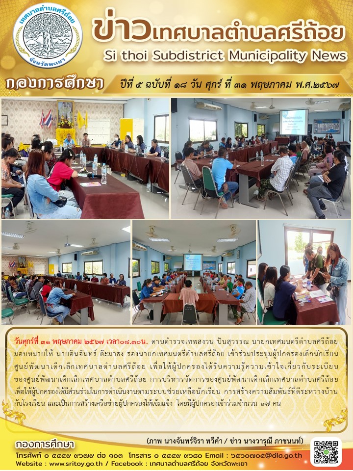 ประชาสัมพันธ์ กองการศึกษา ปีที่ 5 ฉบับที่ 18 เข้าร่วมประชุมผู้ปกครองเด็กนักเรียน ศูนย์พัฒนาเด็กเล็กเทศบาลตำบลศรีถ้อย