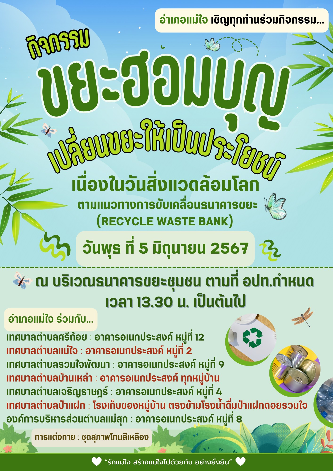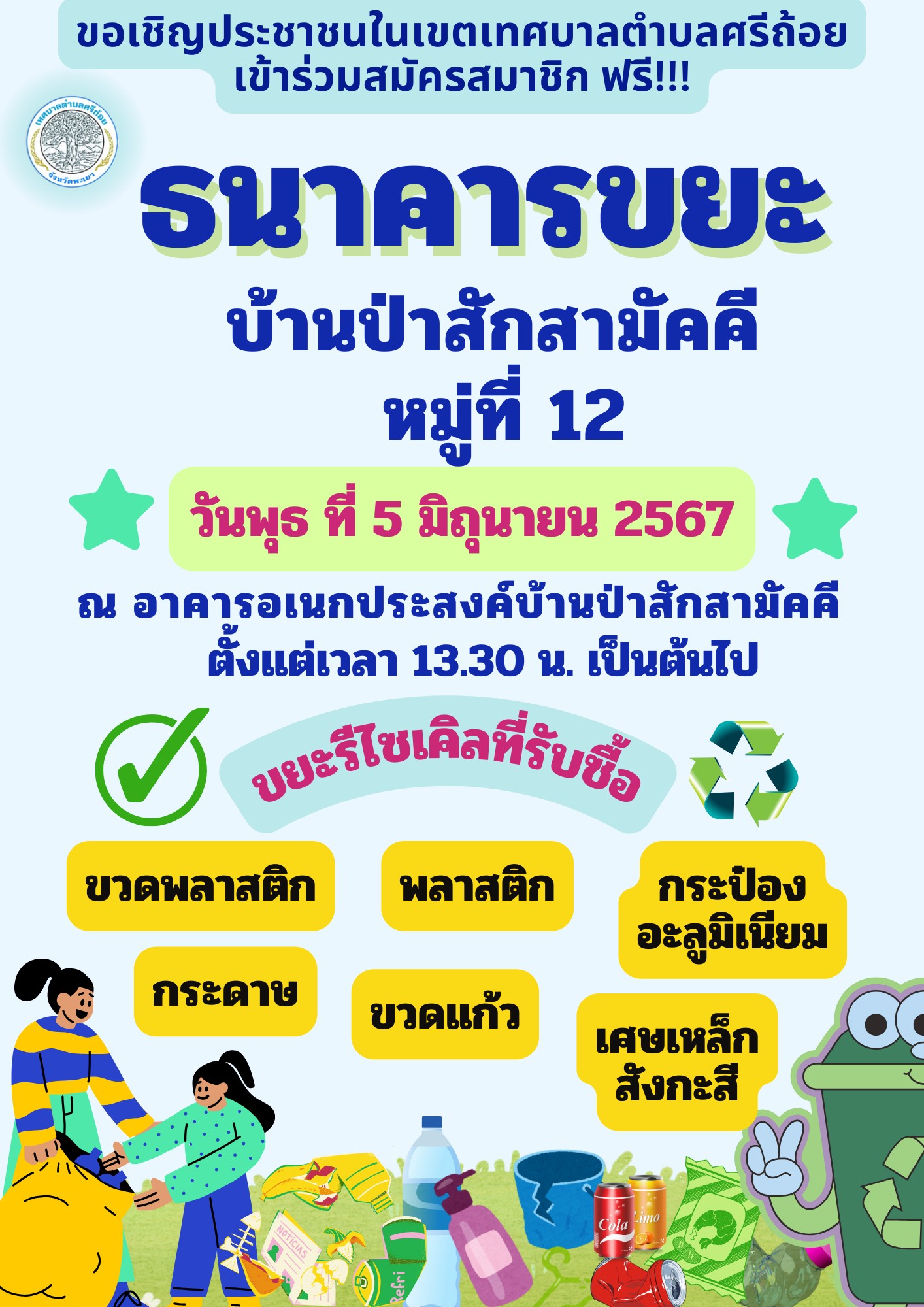 กองสาธารณสุขฯ ขออนุญาตประชาสัมพันธ์✨ MOI WAST BANK WEEK(ธนาคารขยะ) ✅รับซื้อขยะรีไซเคิล ประจำเดือนมิถุนายน 2567 ณ อาคารอเนกประสงค์บ้านป่าสักสามัคคี หมู่ที่ 12