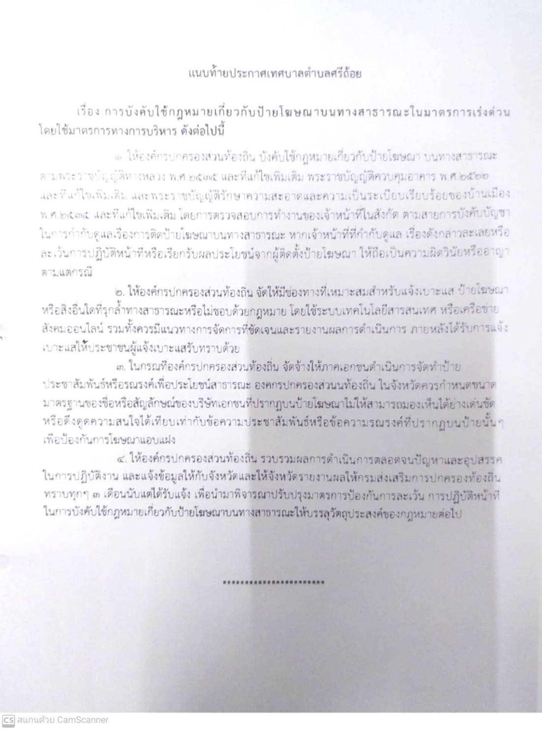 ประกาศ เรื่อง การบังคับใช้กฎหมายเกี่ยวกับป้ายโฆษณาบนทางสาธารณะในมาตรการเร่งด่วน โดยใช้มาตรการทางการบริหาร