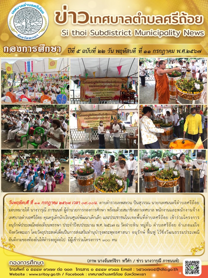 ประชาสัมพันธ์ กองการศึกษา ปีที่ 5 ฉบับที่ 22 โครงการอนุรักษ์หล่อเทียนพรรษา ประจำปีงบประมาณ 2567