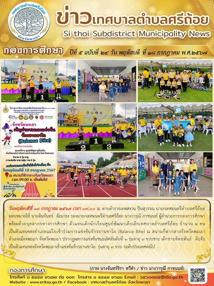 ประชาสัมพันธ์ กองการศึกษา เทศบาลตำบลศรีถ้อย ร่วมจักรยานขาไถ ณ สนามกีฬากลางจังหวัดพะเยา