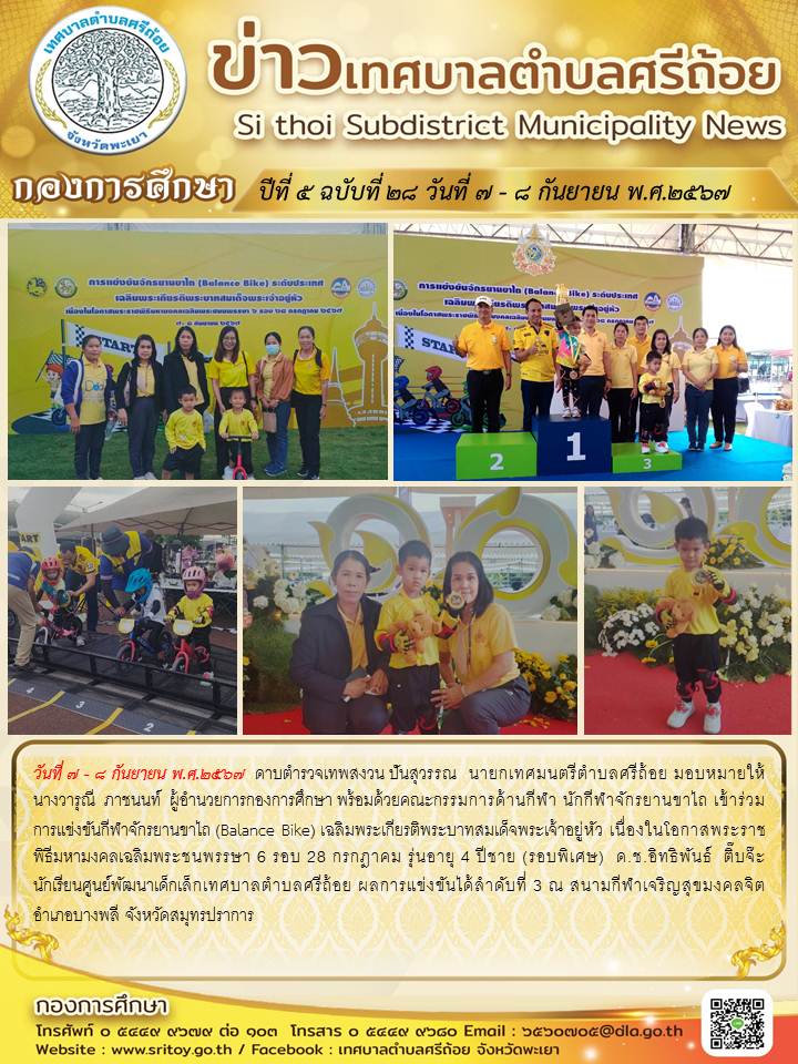 ประชาสัมพันธ์ กองการศึกษา ปีที่ 5 ฉบับที่ 28 เข้าร่วมการแข่งขันกีฬาจักรยานขาไถ ( Balance Bike)