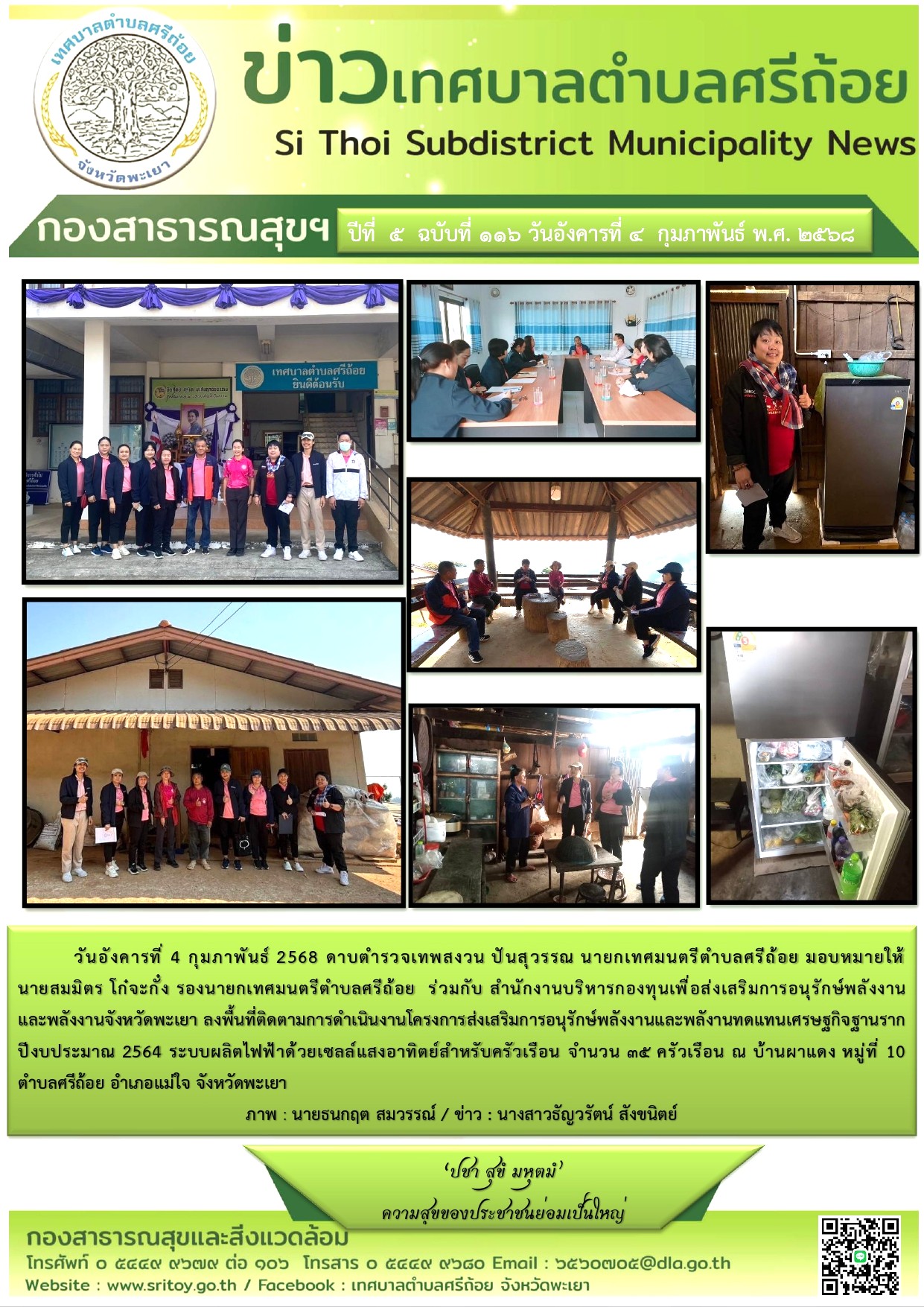 ข่าวประชาสัมพันธ์ เทศบาลตำบลศรีถ้อย ลงพื้นที่ติดตามดำเนินงานโครงการส่งเสริมอนุรักษ์พลังานและพลังานทดแทนเศรษฐกิจฐานราก ปีงบประมาณ พ.ศ.2564