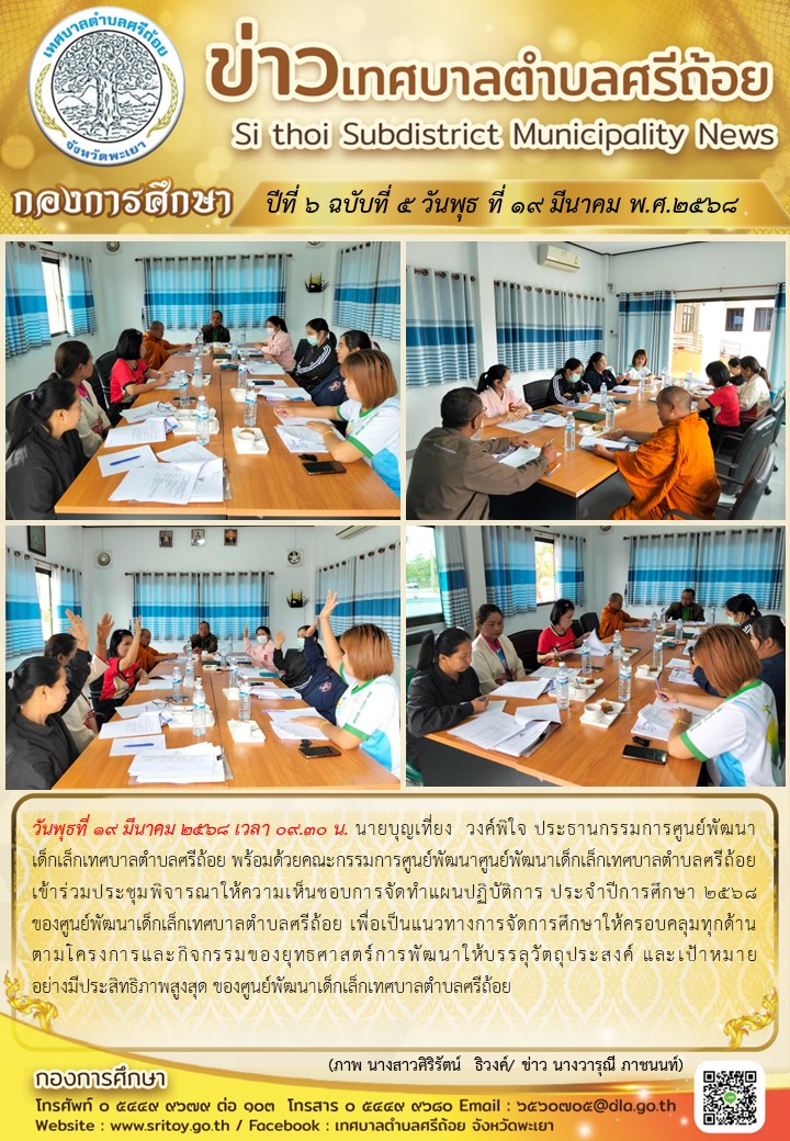 ประชาสัมพันธ์ กองการศึกษา ปีที่ 6 ฉบับที่ 5 เข้าร่วมประชุมพิจรณาให้ความเห็นชอบการจัดทำแผนปฎิบัติการ