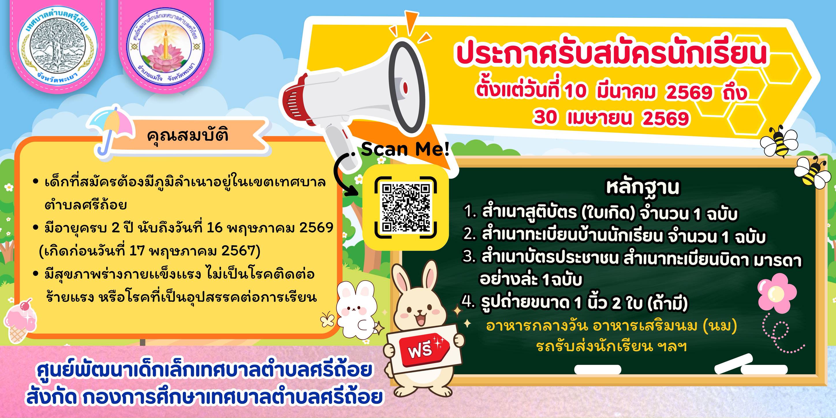 ประกาศรับสมัครนักเรียน ตั้งแต่วันที่ 10 มีนาคม 2569 ถึง 30 เมษายน 2569