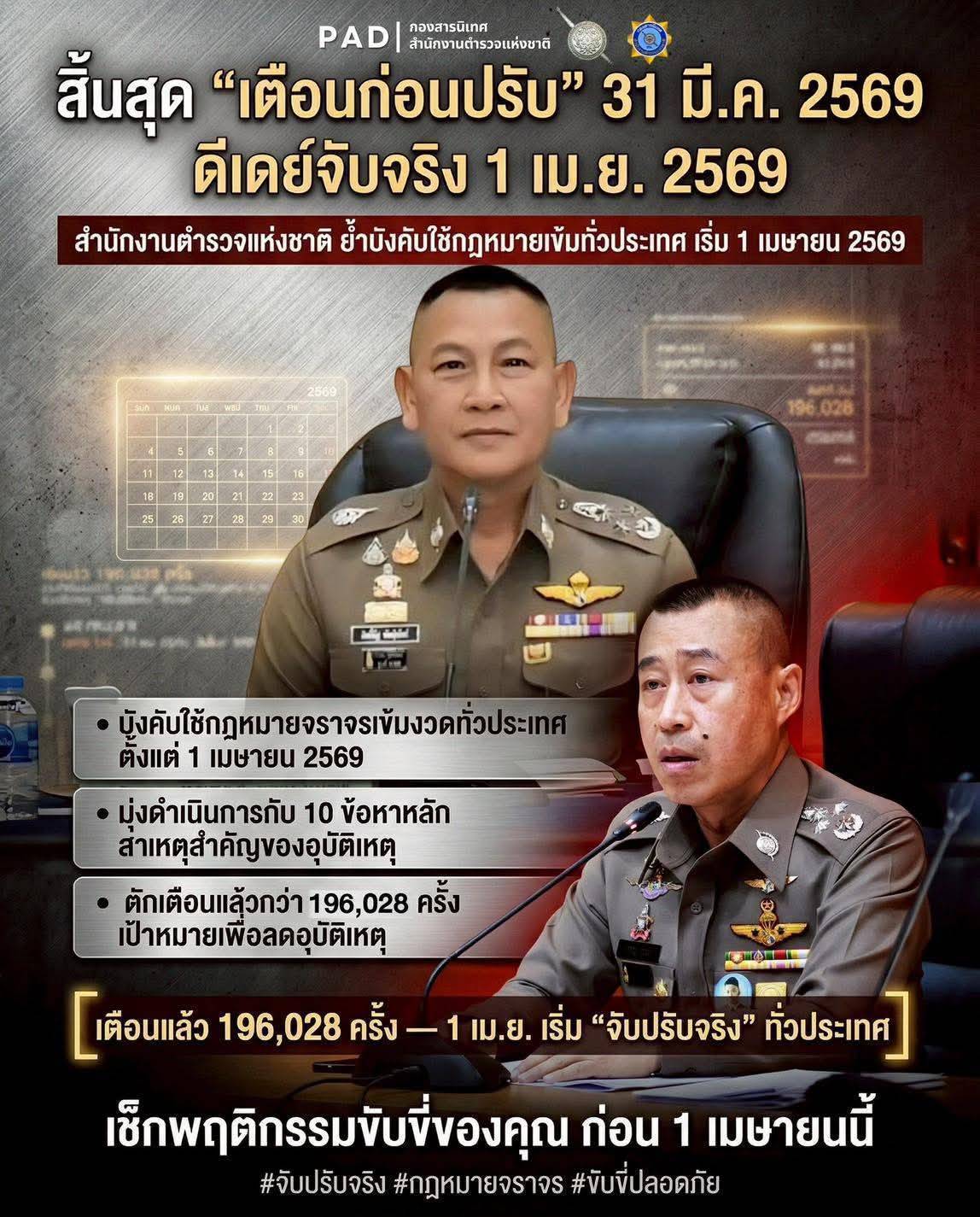 สำนักงานตำรวจแห่งชาติ ย้ำบังคับใช้กฎหมายเข้มทั่วประเทศ เริ่ม 1 เมษายน 2569
