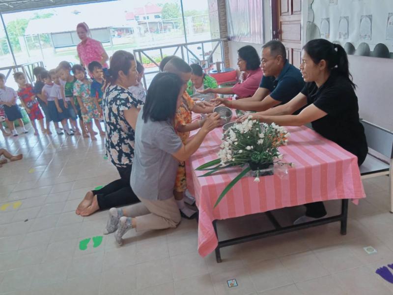 จัดพิธีรดน้ำดำหัว นายสมมิตร  โก๋จะกั๋ง รองนายกเทศมนตรีนางวารุณีภาชนนท์ผู้อำนวยการกองการศึกษาและผู้ปกครองนักเรียนเนื่องในโอกาสวันสงกรานต์ 2569 ณ ศูนย์พัฒนาเด็กเล็กเทศบาลตำบลศรีถ้อย