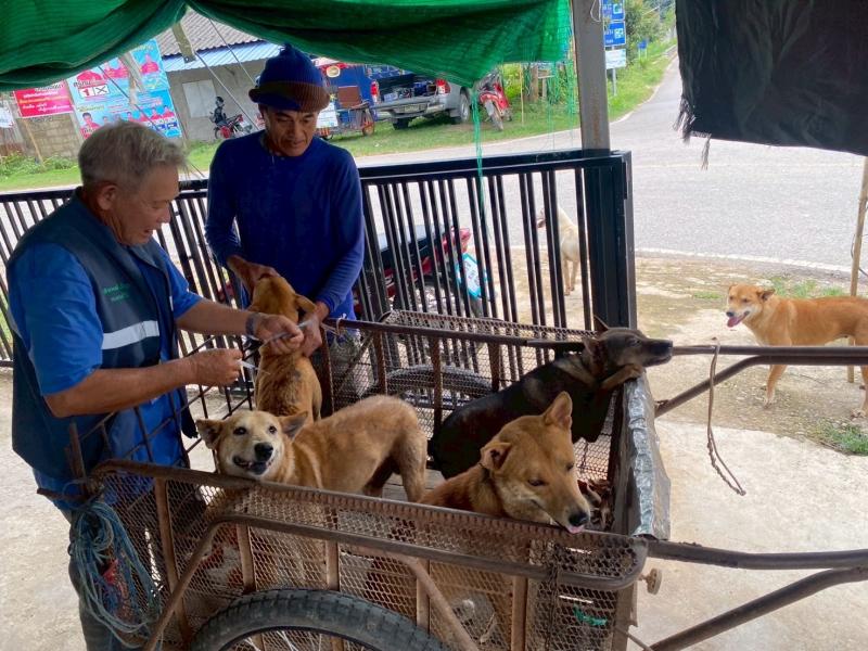 ออกให้บริการฉีดวัคซีนป้องกันโรคพิษสุนัขบ้า ตามโครงการสัตว์ปลอดโรค คนปลอดภัยจากโรคพิษสุนัขบ้า ประจำปีงบประมาณ พ.ศ.2568